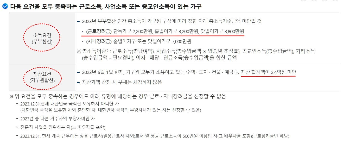 근로장려금 신청 대상 기준